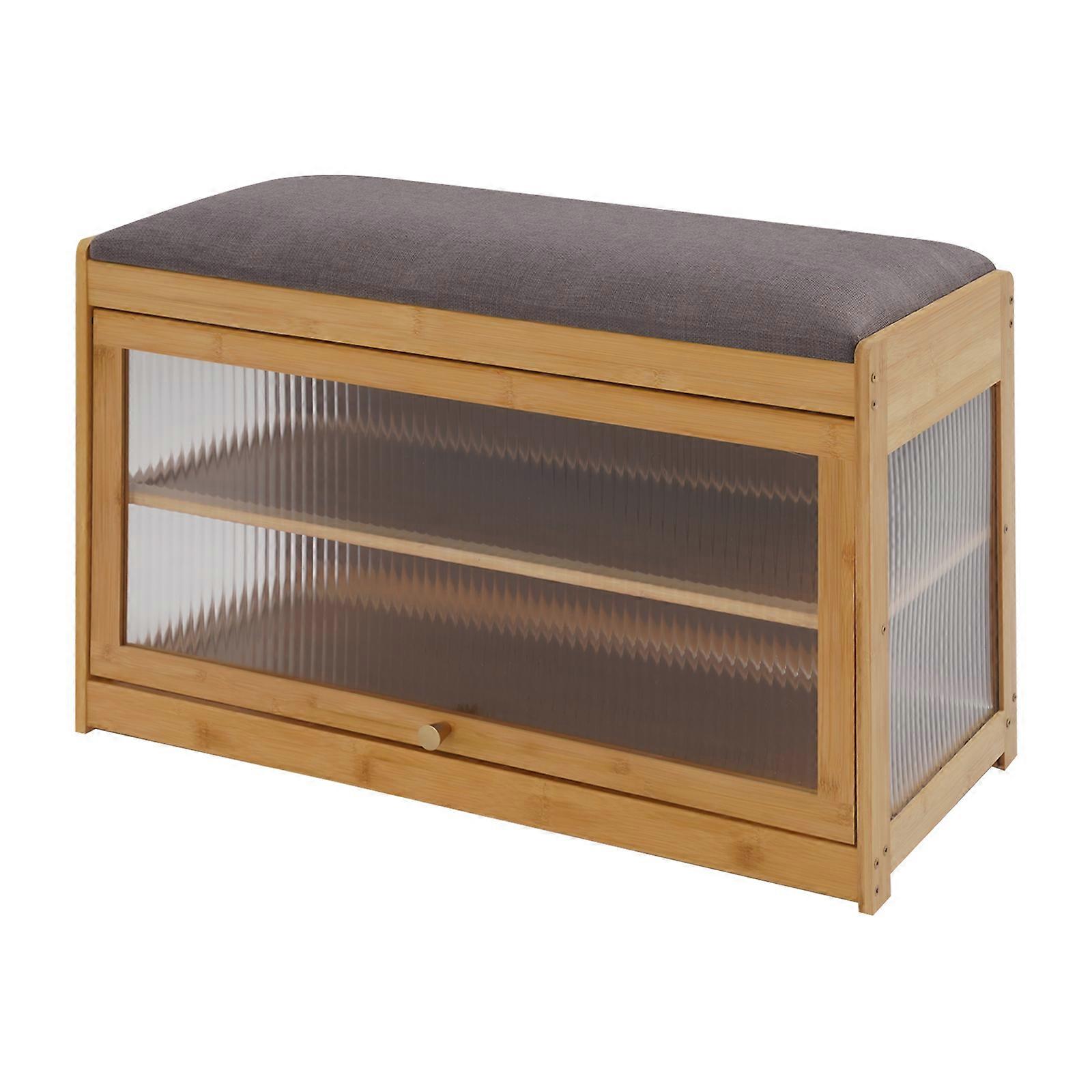 Shoe-changing Bench Bamboo Shoe Storage Bench w/ 2-Tier Shoe Organizer