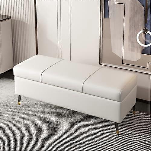 Bedroom Storage Bench with Hidden Shoe Storage, Rustic Modern Upholstered Seat, 47 Inch