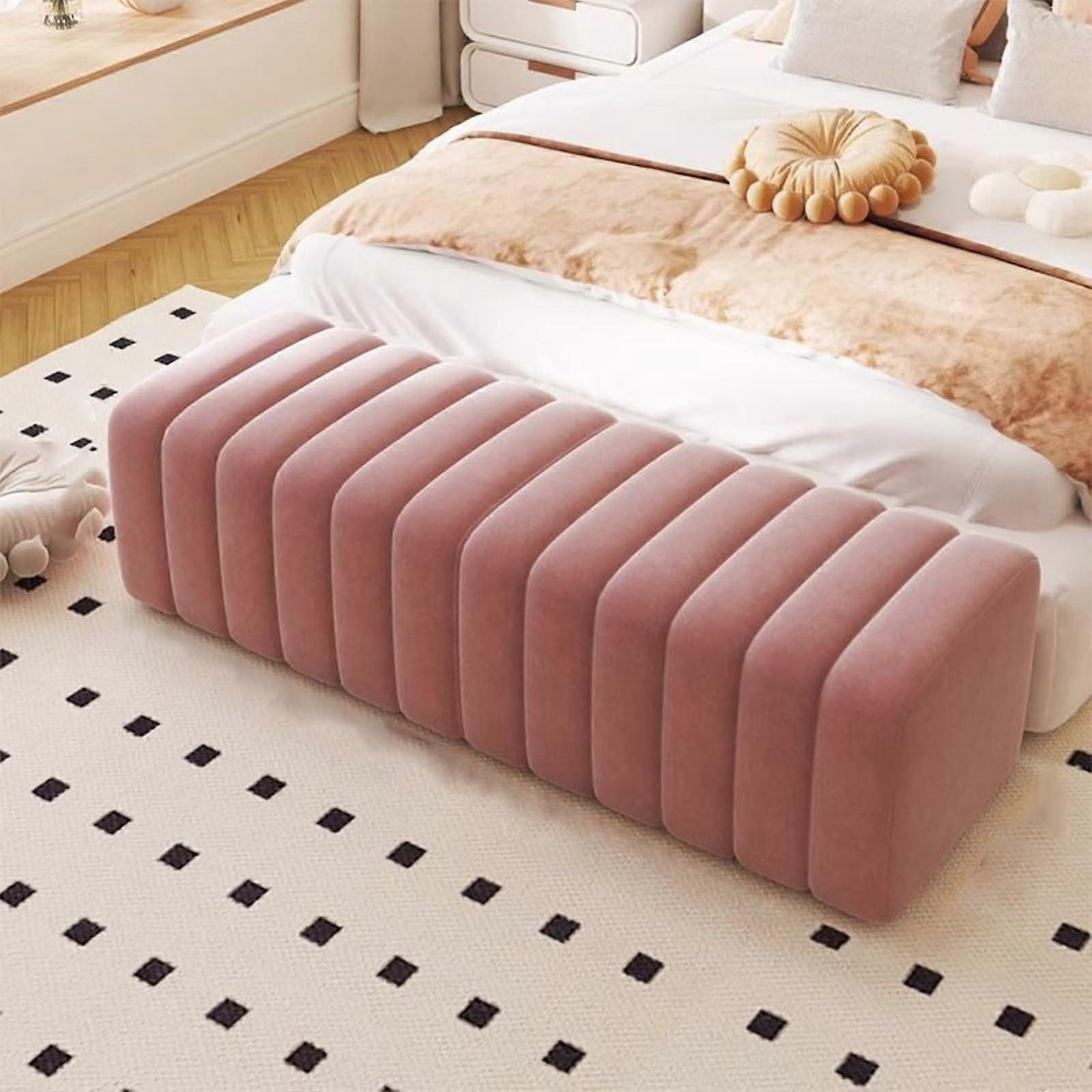 Upholstered Bench with Solid Wood Frame and Padded Seat for Bedroom, Entryway, Light Pink 100cm