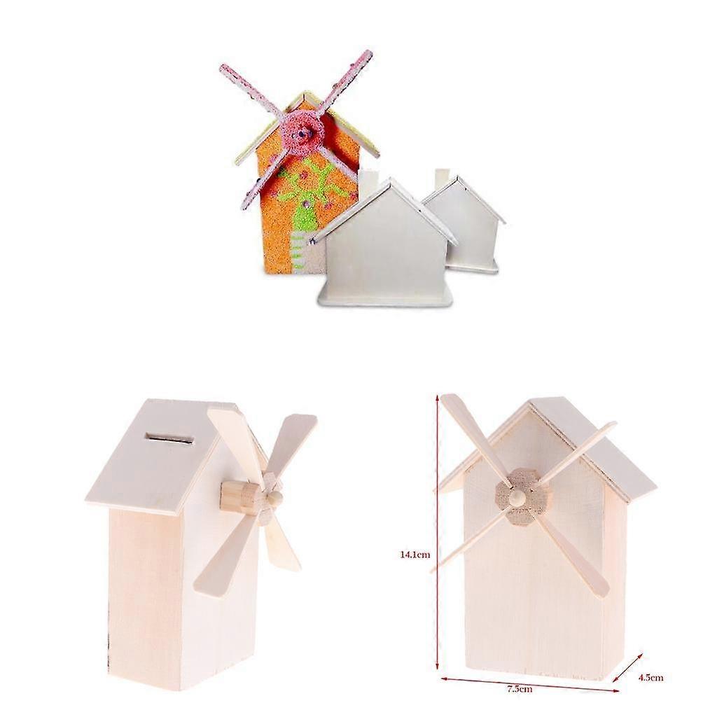 Children Paintable Untreated Wooden Money Box Piggy Bank Wooden Windmill Money Box DIY Crafts Desk Nursery Decorations