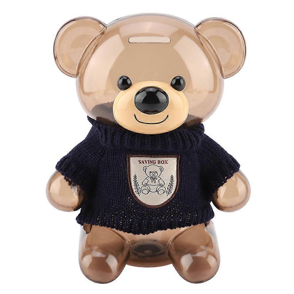 Children Coin Piggy Bank Money Box Cartoon Clothes Bear Plastic Transparent (Blue)