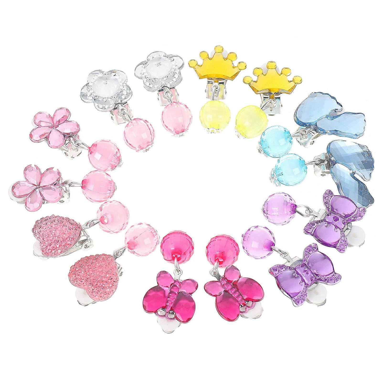 Kids Nonpiercing Acrylic Cartoon Ear Clips Assorted Color 7 Pairs for Birthday Parties and Daily Wear