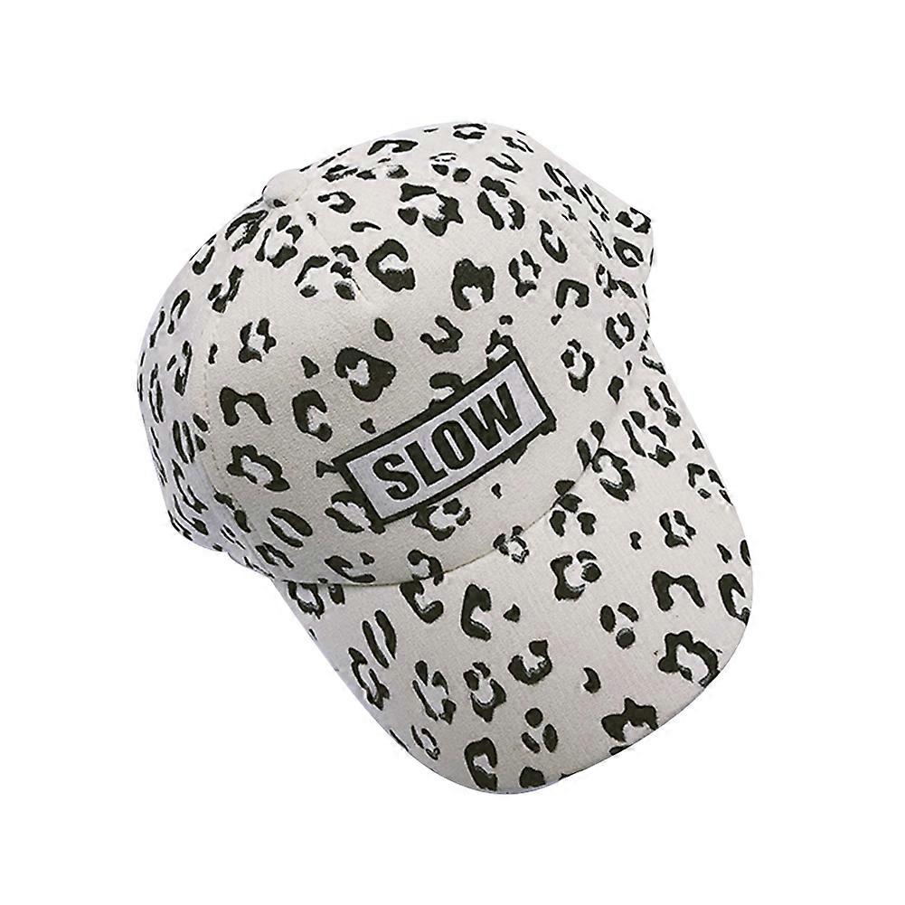 Kids Child Leopard Pattern Baseball Cap Letter Embroidery Adjustable Snapback Hat(White)