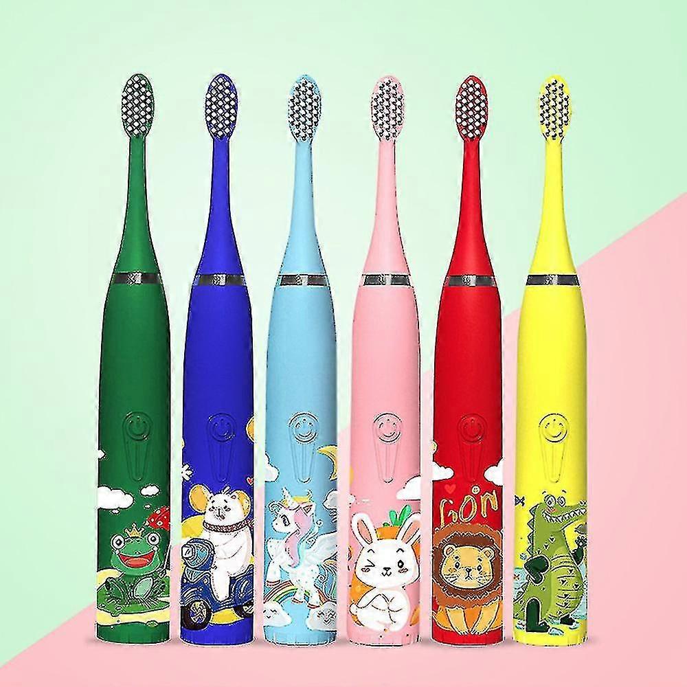 Children Sonic Electric Toothbrush Oral Care Teeth Cleaning Usb Charging With 6 Spare Heads
