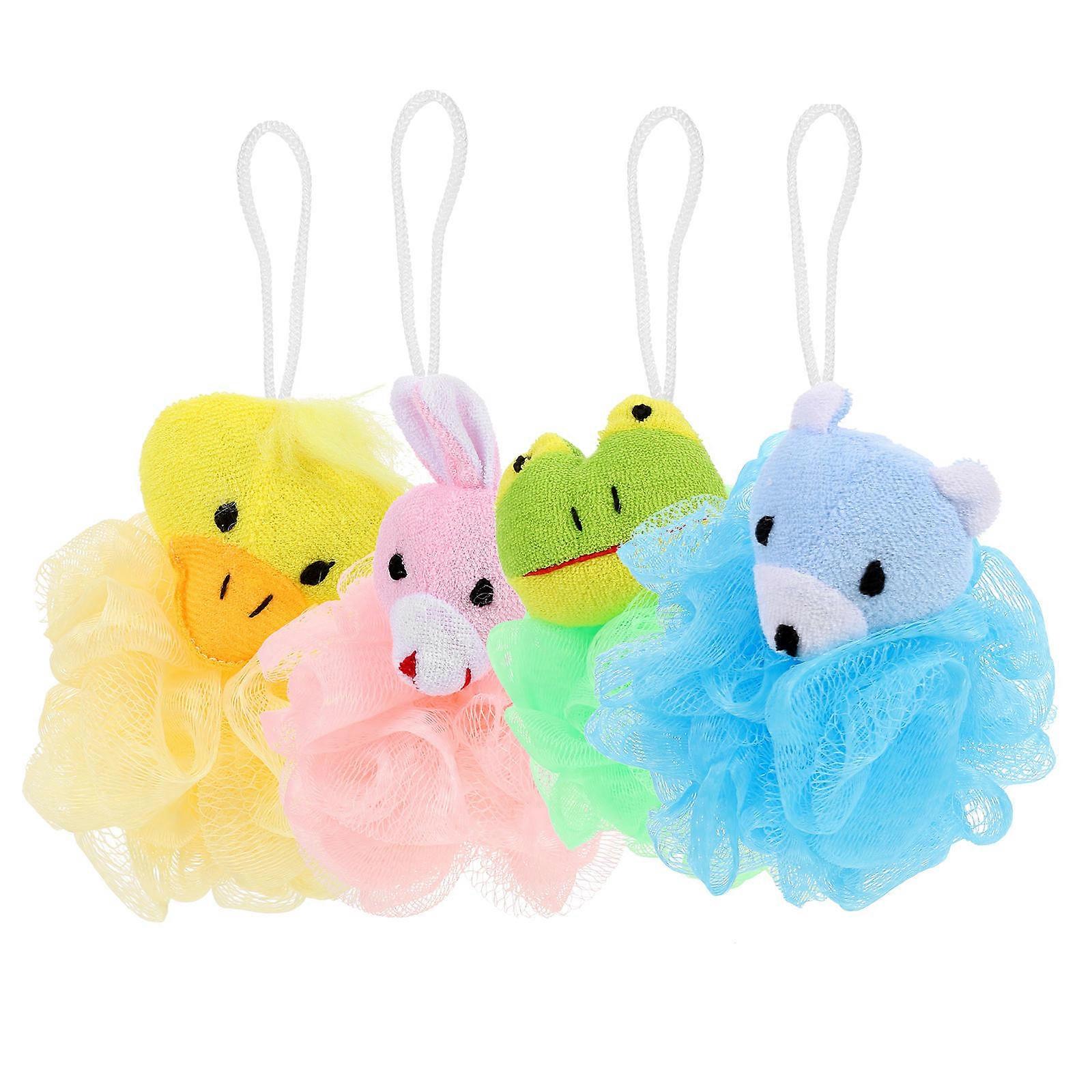 Kids Body Wash Loofah Soft Bath Ball Cartoon Animal Shapes Assorted Color Pe Material Body Loofah 4Pcs