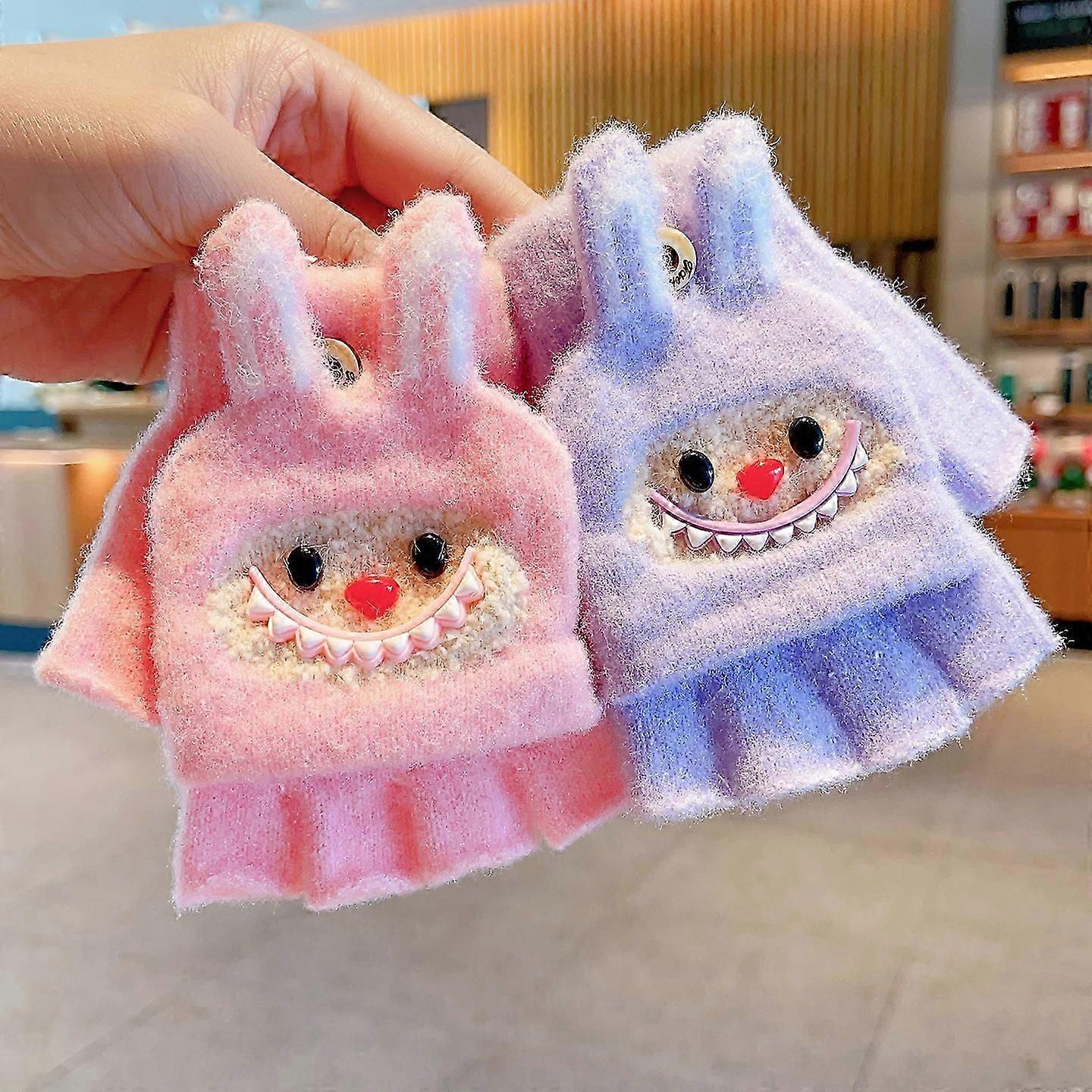 Labubu children's flip-top fingerless gloves for boys and girls, thickened, warm, windproof, and fingerless for autumn and winter.