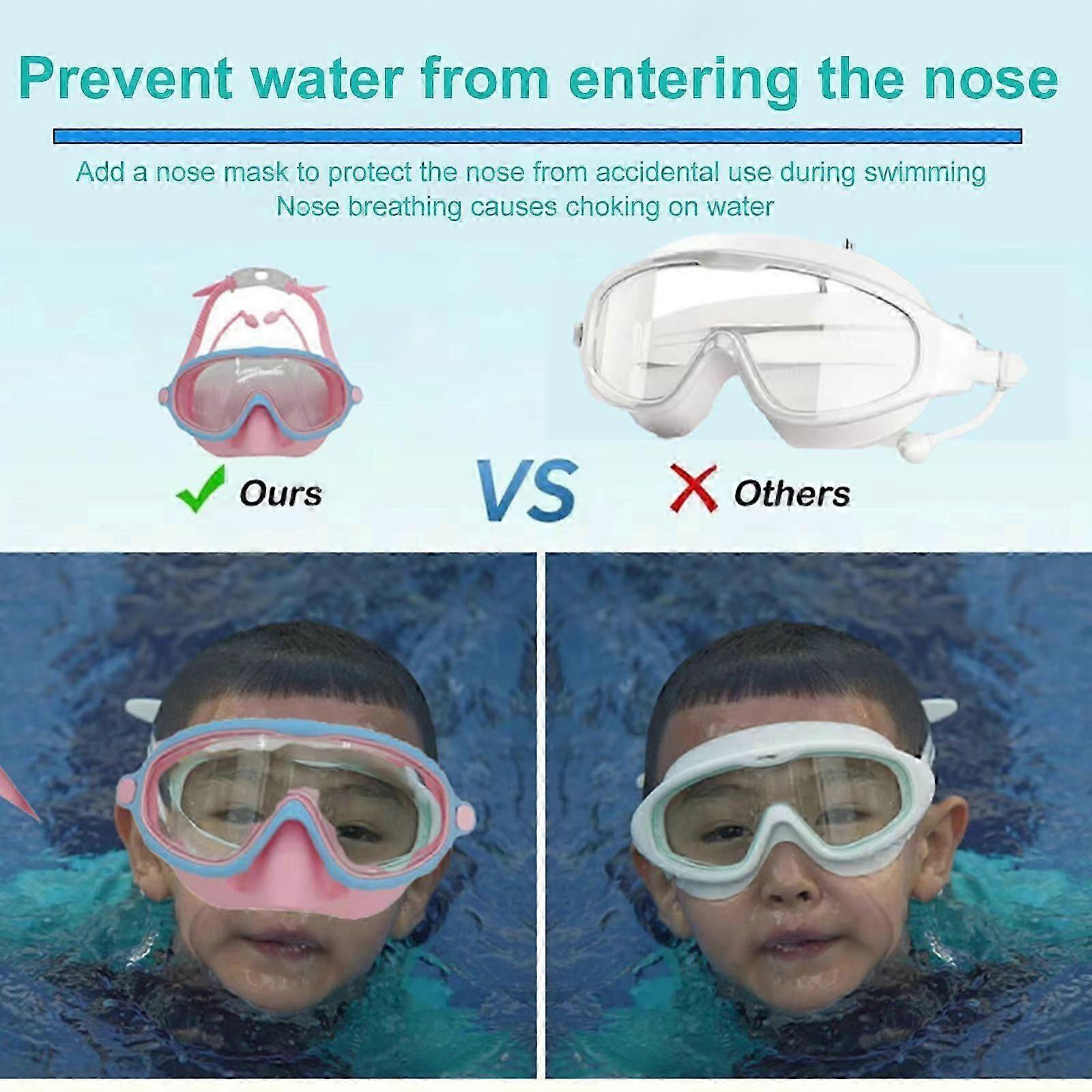 Kids swimming goggles with nose protection Antifog sealing comfortable adjustment pink blue