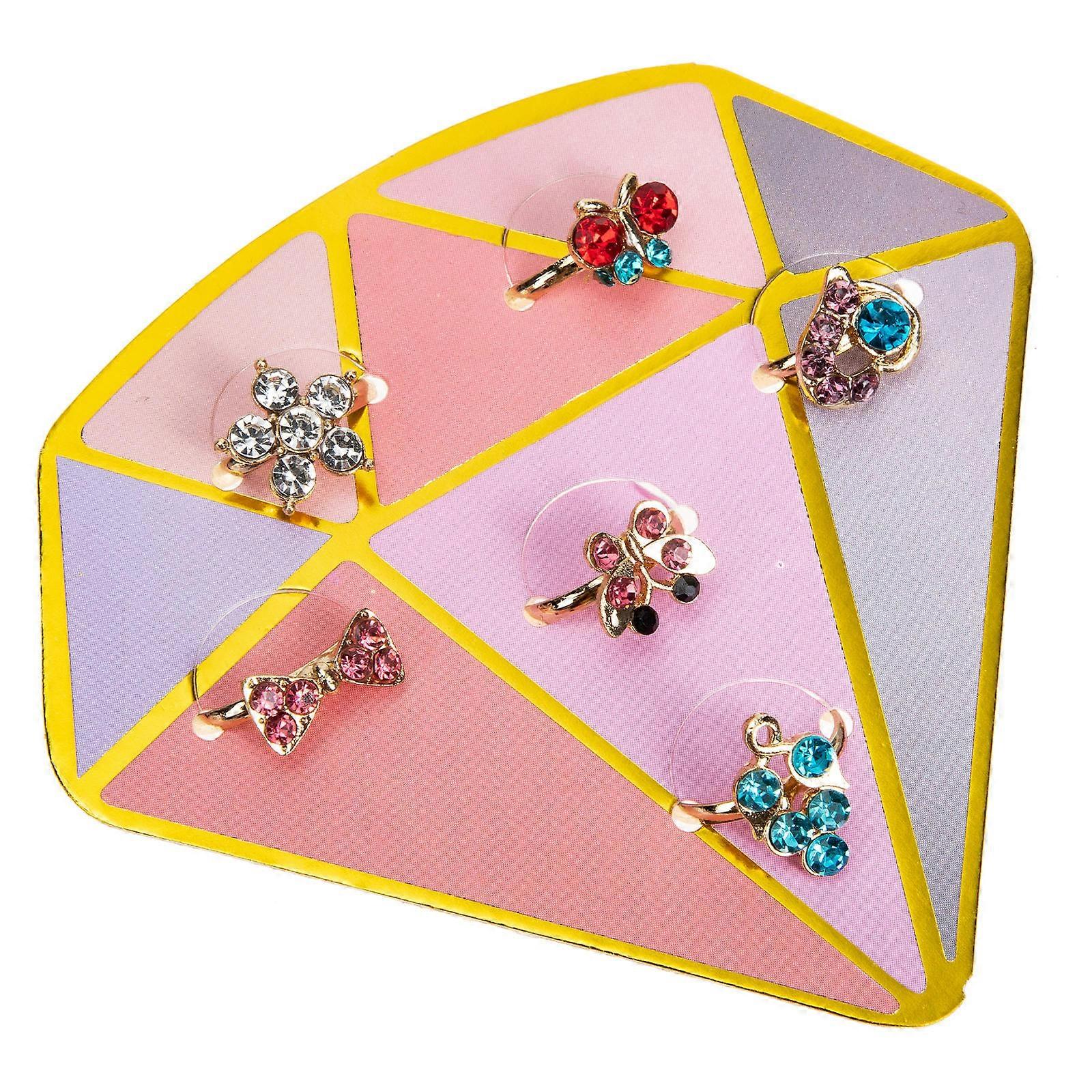 Childrens Rings For Little Girls Jewelry With Box Assorted Color 12x10cm Adjustable 6Pcs