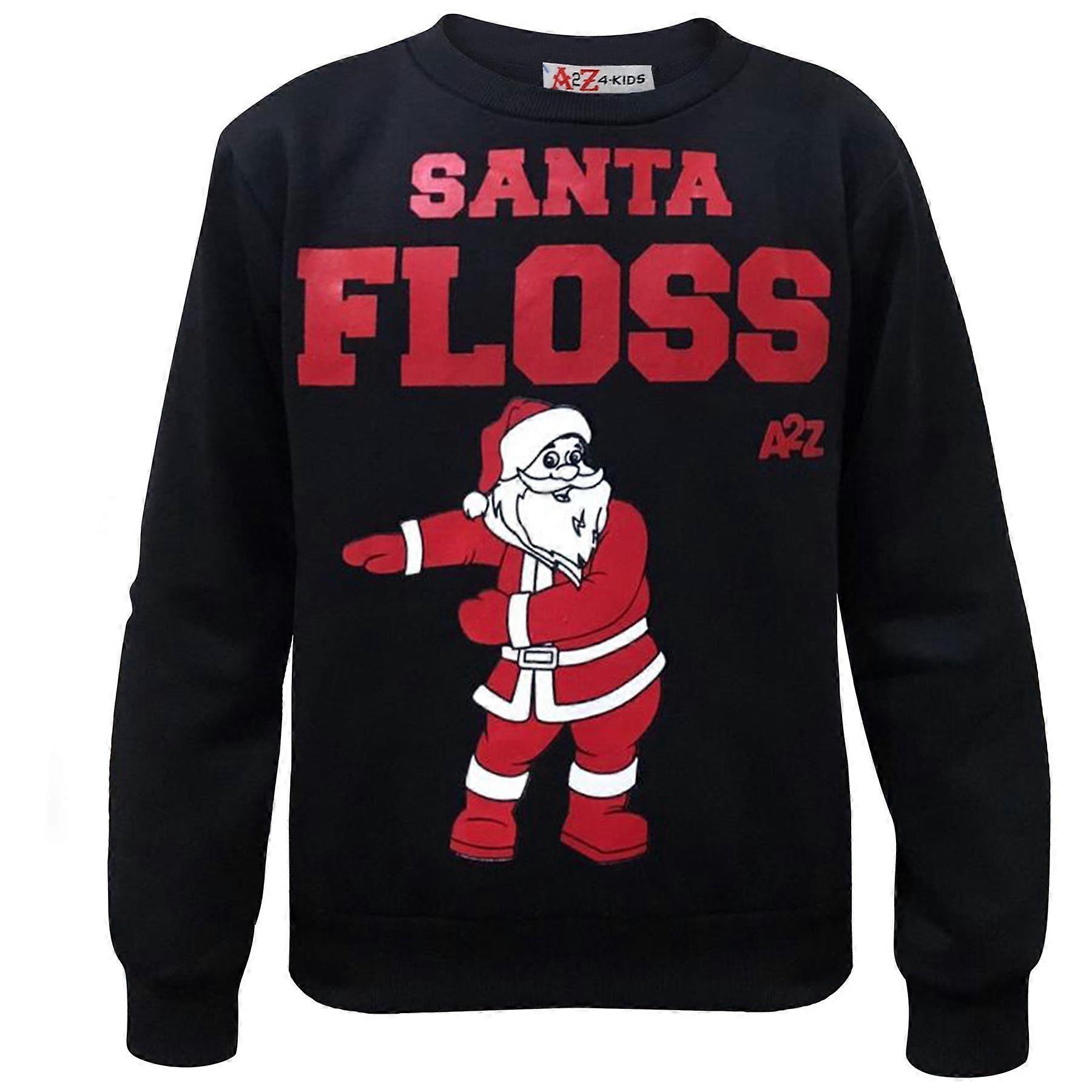 Kids Girls Boys Black Christmas Jumper Pullover Sweatshirt Santa Floss Print