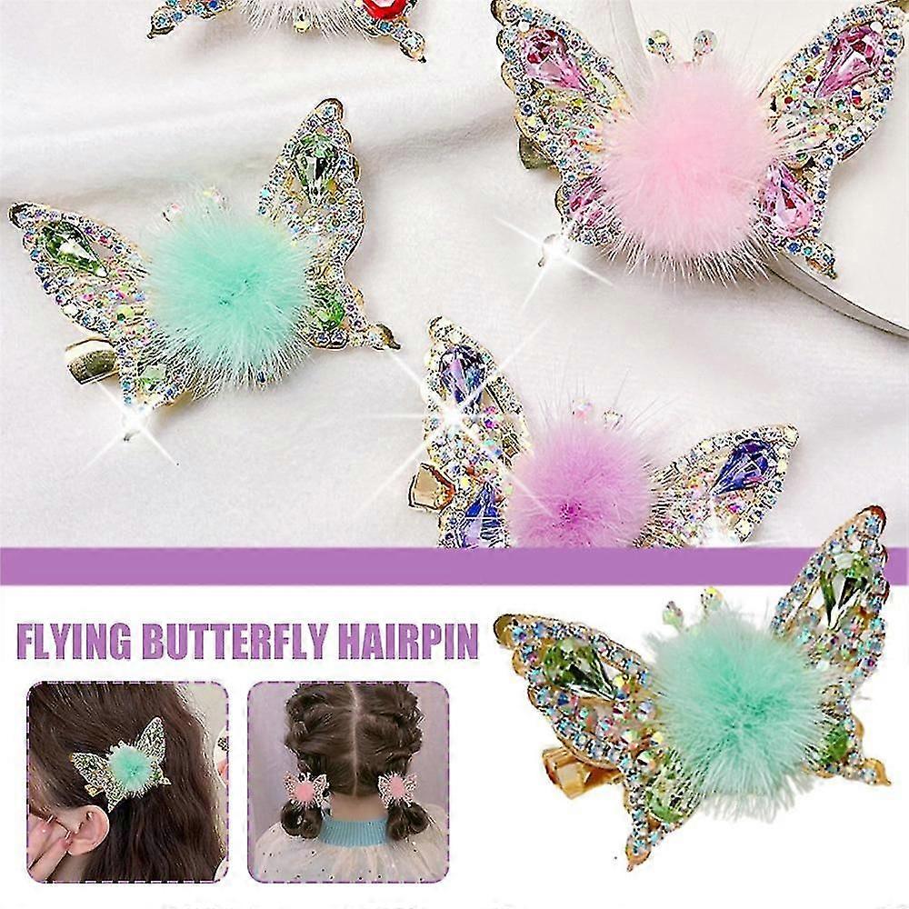 Kids Girls Glitter Crystal Butterfly Hair Clips With Moving Wings, Plush Hairpin Barrettes