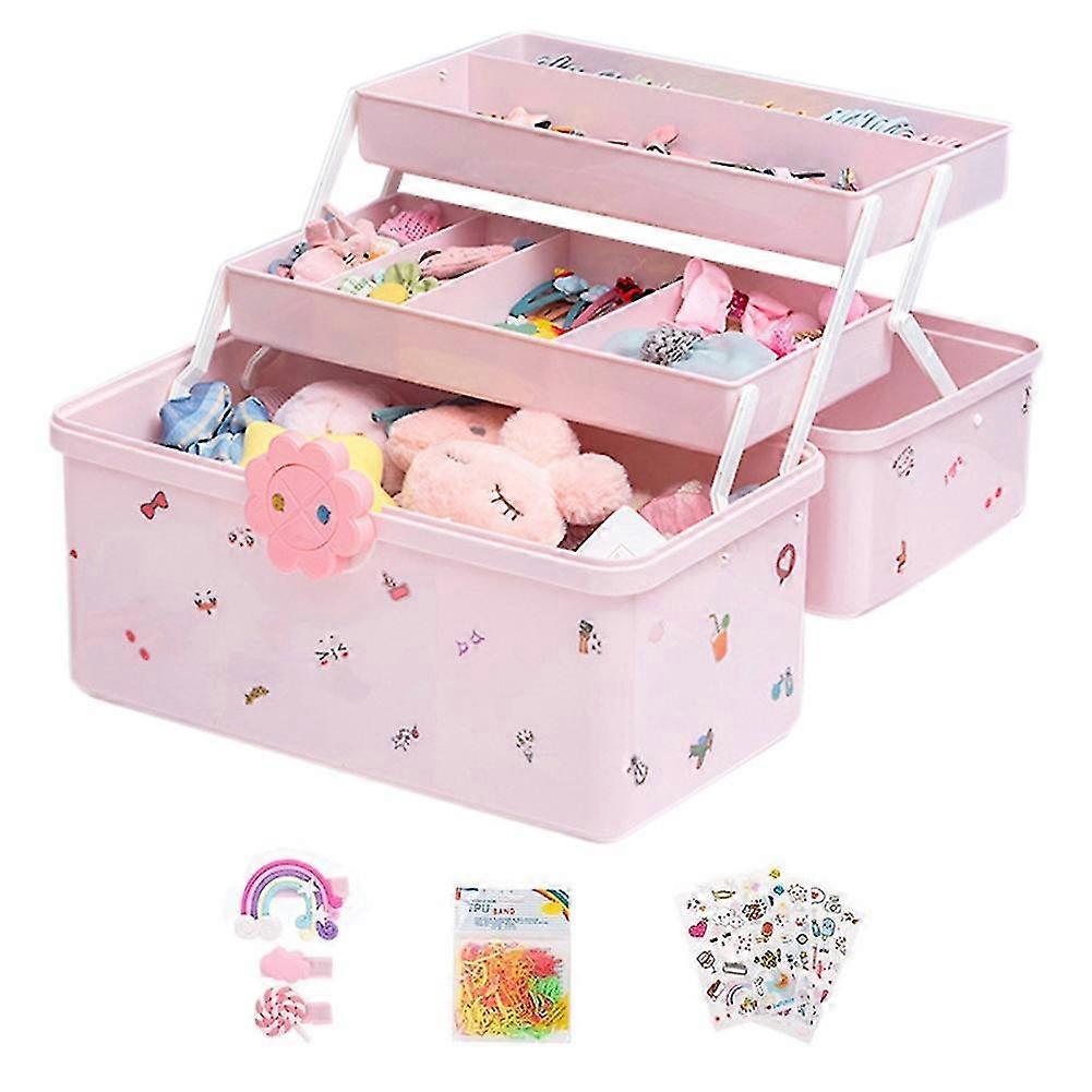 Function: with lid, multi-layer, with lock Use object: hair accessories, bracelets/bangles, necklaces/pendants Applicable people: children Style: simple and modern size:29x16x16cm Material:plastic colour:Pink Package Contents: 1 x Storage Box 1 Board x Card Issuing 1 Pack x Head Rope 6 x Stickers(Random, Cannot choose to specify) Only the above package content, other products are not included. Note: Light and different displays may cause the color of the item in the picture a little different from the real thing. The measurement allowed error is +/- 1-3cm.