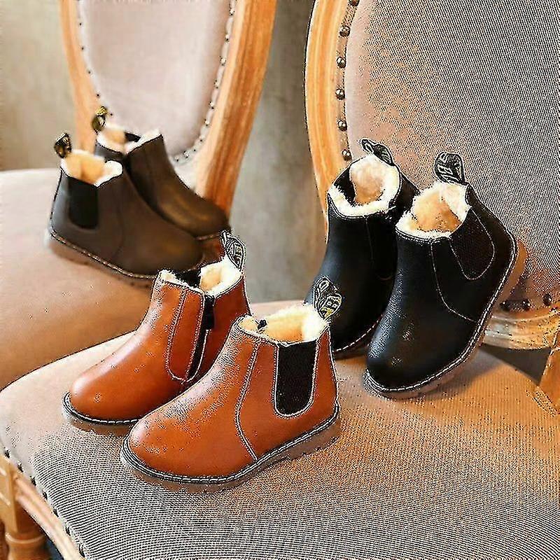 Kids Ankle Boots Boys Girls Winter Warm Snow Boots Chelsea Fur Lined Shoes