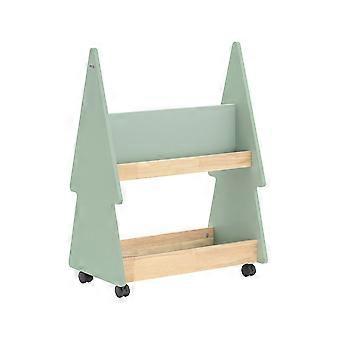 Tree Shaped 2 Tiers Children Kids Bookcase Bookshelf Storage Shelf on Wheels Light Green and Natural,SoBuy KMB99-GR