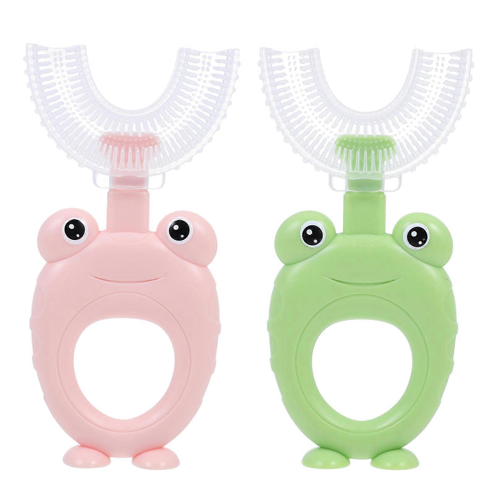 Kids U-Shaped Toothbrush Toddler Oral Cleaning Green Silicone Ergonomic Design 2Pcs