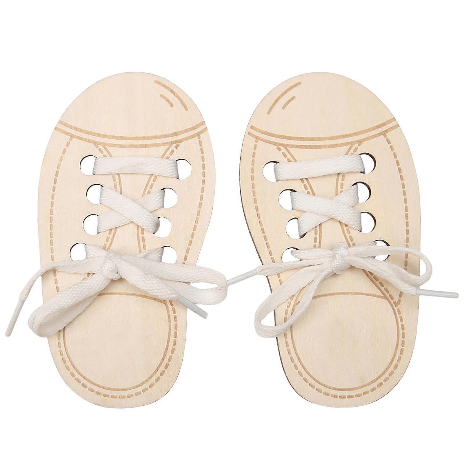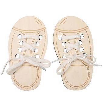 Children's shoelace practice toy, wooden lacing threading toddler learning toy Train handeye coordination. Toy 02