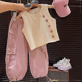 Παιδικό Κοστούμι Καλοκαιρινό Παιδικό Μονόχρωμο Γιλέκο + Cargo Παντελόνι Σετ Δύο Τεμαχίων Παιδικά Ρούχα Ρούχα για κορίτσια