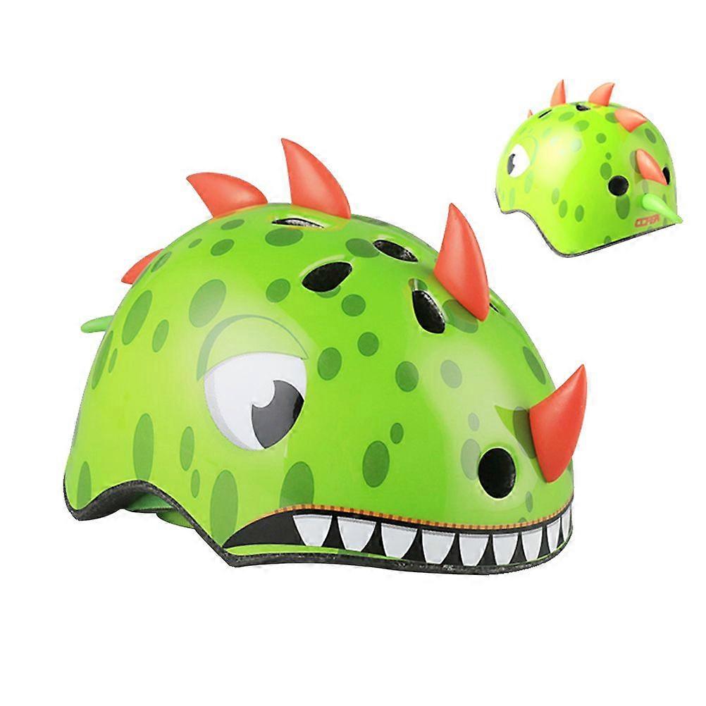Children's Bike Helmet Children Sports Helmet Safety Protective Gear 3D Cartoon Dinosaur Helmets for Skating Cycling Riding - Size S 50-54cm (Green)