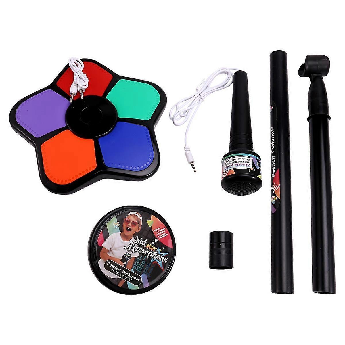 Kids Microphone with Light Stand Toy,Height-Adjustable Microphone,Brain-Training Educational Toys Birthday Gift Black