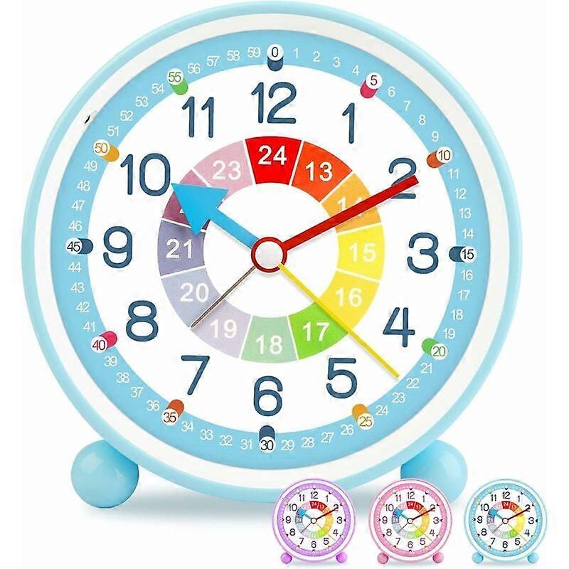 Children's Alarm Clock Analog Boy Girl Silent Battery Powered Table Clocks No Ticking Bedside Big Bright Function Snooze Light for Bedroom Office- Blu