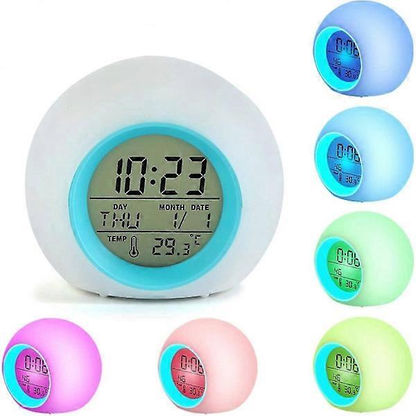Kids LED Alarm Clock Wake Up Digital Clocks Bedside Clock 7 Colors Flashing Lights for Bedroom Decor (Blue)