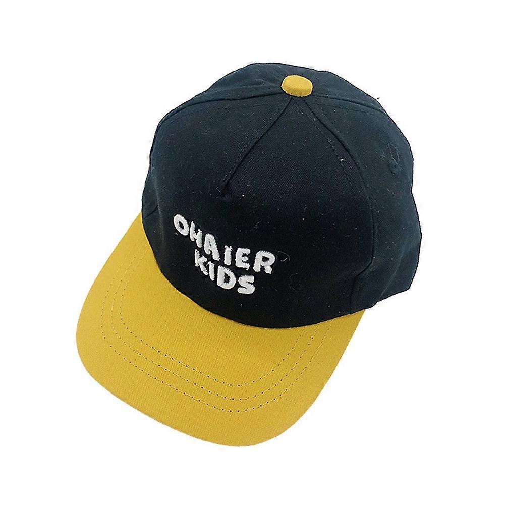 Kids Child Unisex Baseball Caps Two Tone Letter Embroidery Adjustable Sun Hat(Black)