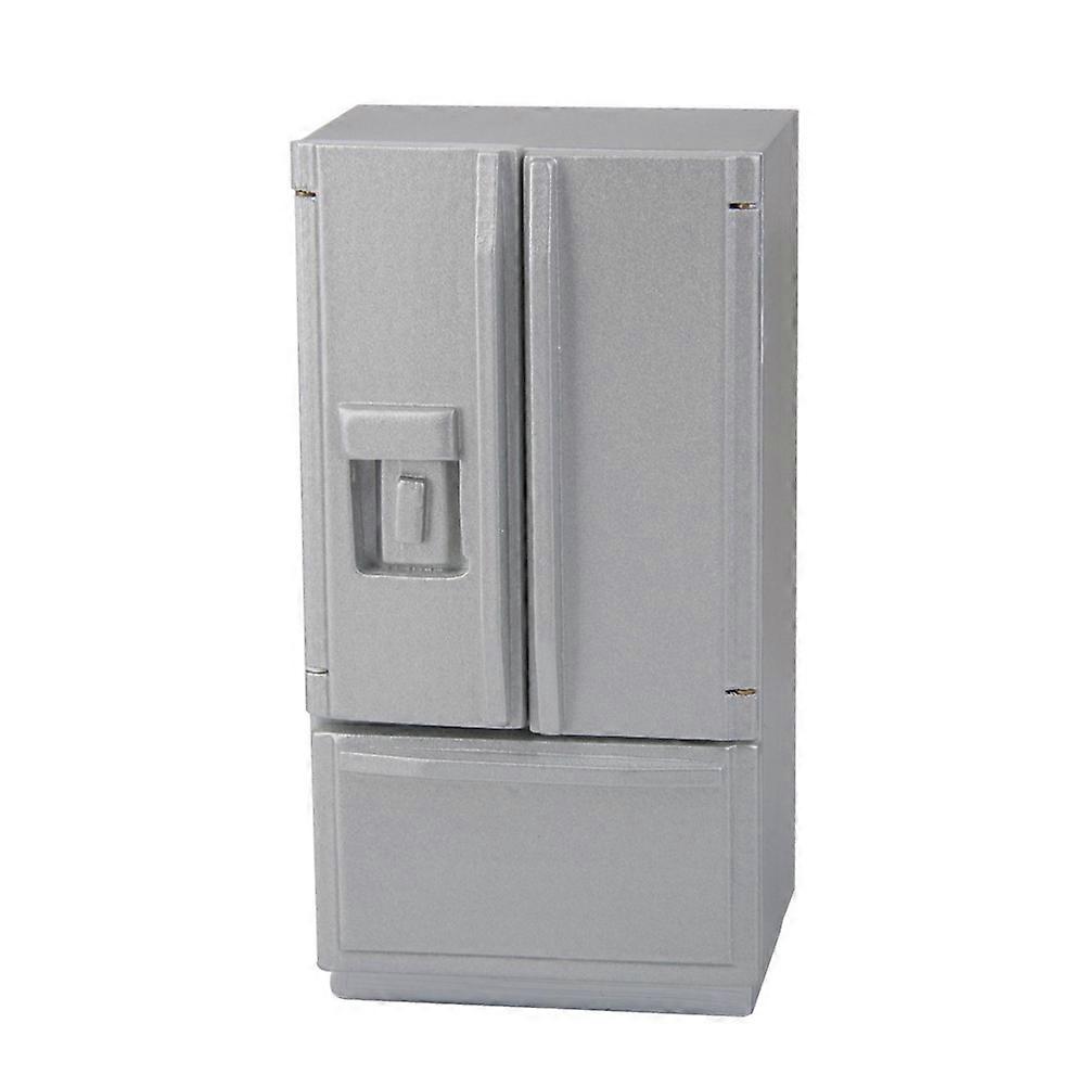 Kid Toy Simulation Double Doors Refrigerator Educational Miniature House Furniture Silver 7.2*5.4*13.7cm 1Pc