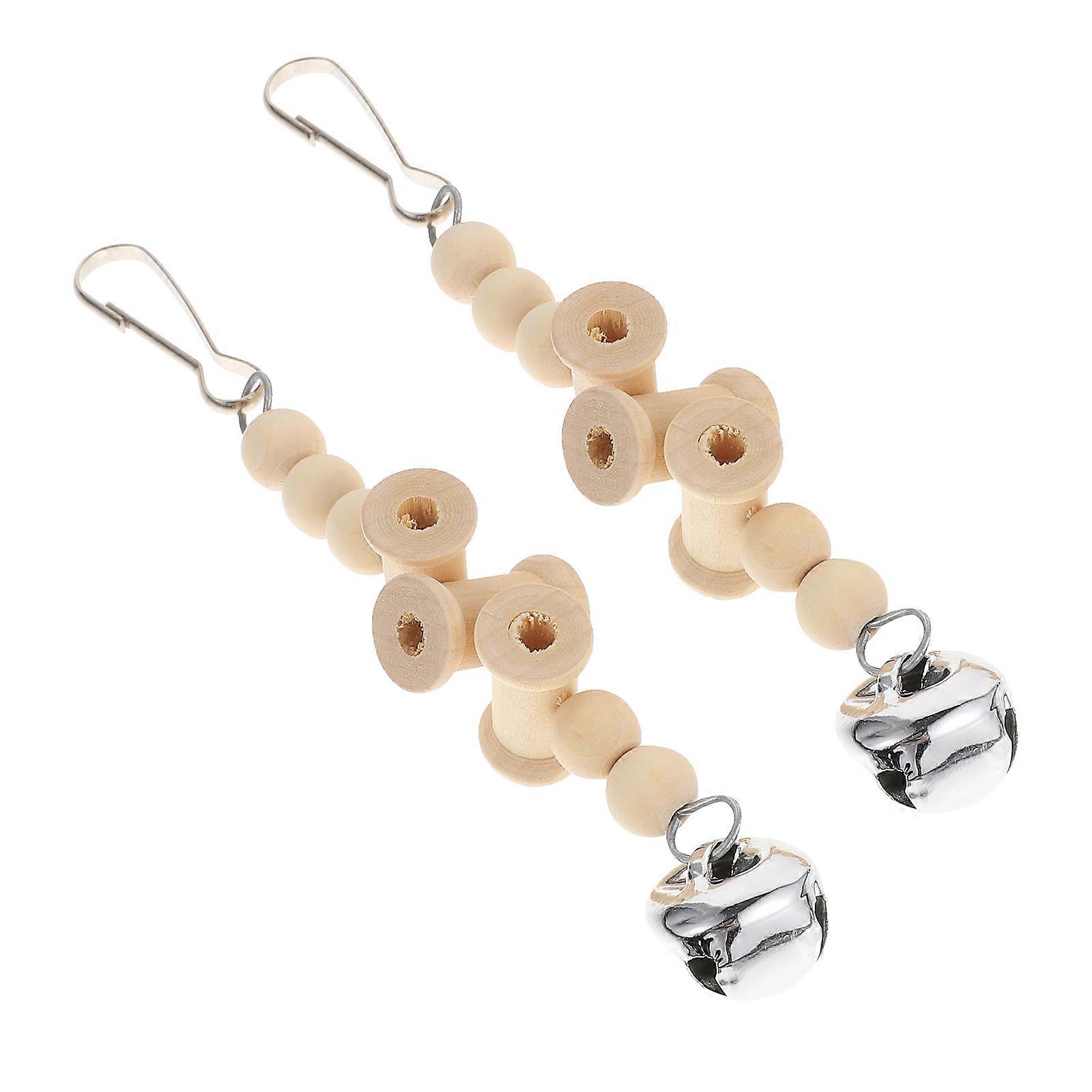 Pet Chewing Toy Parrot Wooden Hanging Toy with Bells 4Pcs