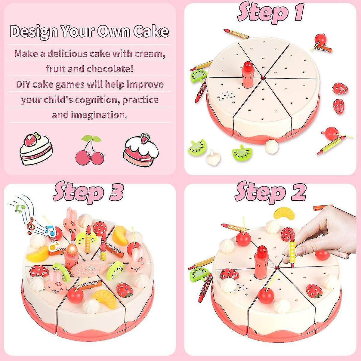 Birthday Cake Toy With Lights Birthday Music, Pretend Play Cutting