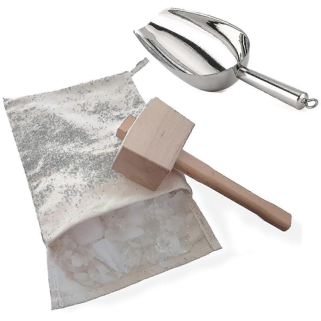 Pack Of Professional Bags And 1 Piece Ice Mallet Set Ice Shovel-15.3 8.6 Inch Reusable Canvas Crushed Ice Bags With Wooden Mallet For Home Party Ba