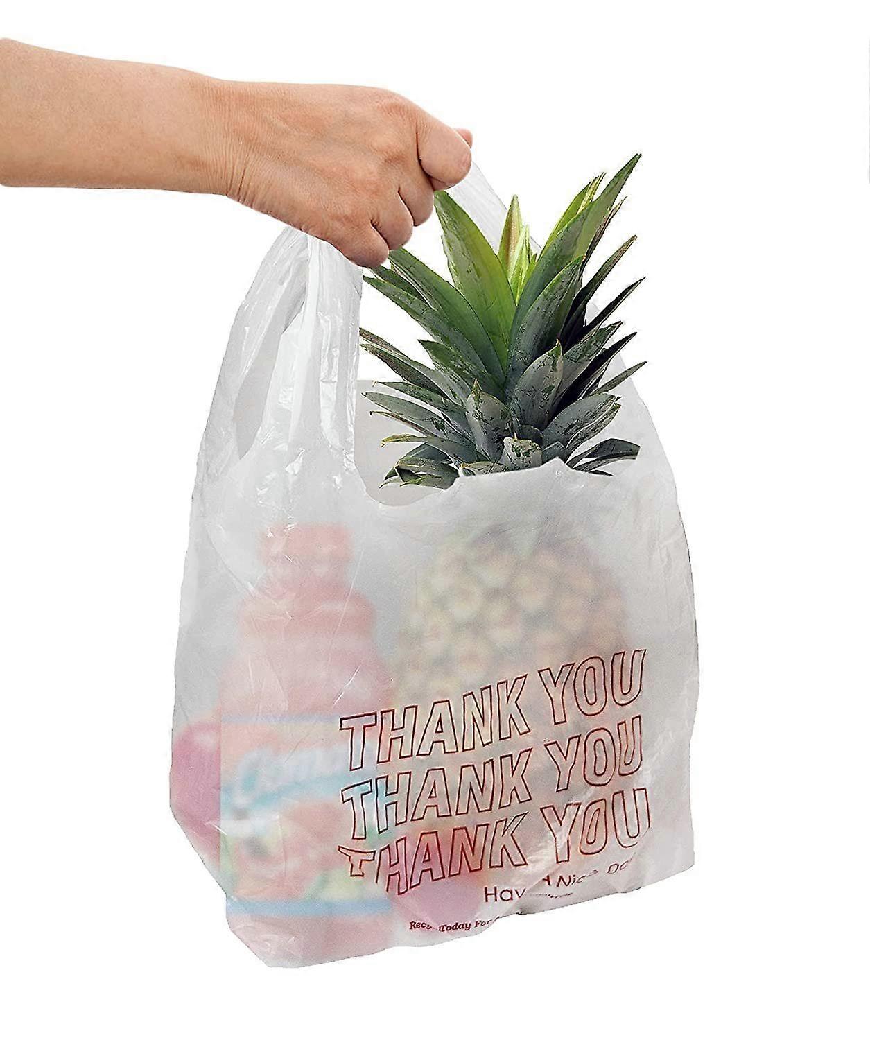 Details:We are pleased to bring to your attention high quality product: 100 pack THANK YOU T-shirt Plastic bags 11.5 x 6.5 x 21 (11 1/2 x 6 1/2 x 21). White Grocery bags. Give your store a professional and refreshing appearance that stands out from the typical "Thank You" bags. Featuring red and white "Thank You" print; this bag is a wonderful way to show your customers that you appreciate their business. Made of durable plastic these bags are available in standard "supermarket" size; fitting perfectly into our bagging stand or jack for quick and easy use. The thank you plastic t-shirt bag is an economical way to provide a necessary retail packaging solution. WHAT DO YOU GET? - T-Shirt carryout bags. Thickness: 0.6 mil. - 100 white grocery plastic bags. In bulk; wholesale. - Poly plastic bags are made out of HDPE film. - Thank you design on grocery bags. - Reusable plastic bags with handles.
