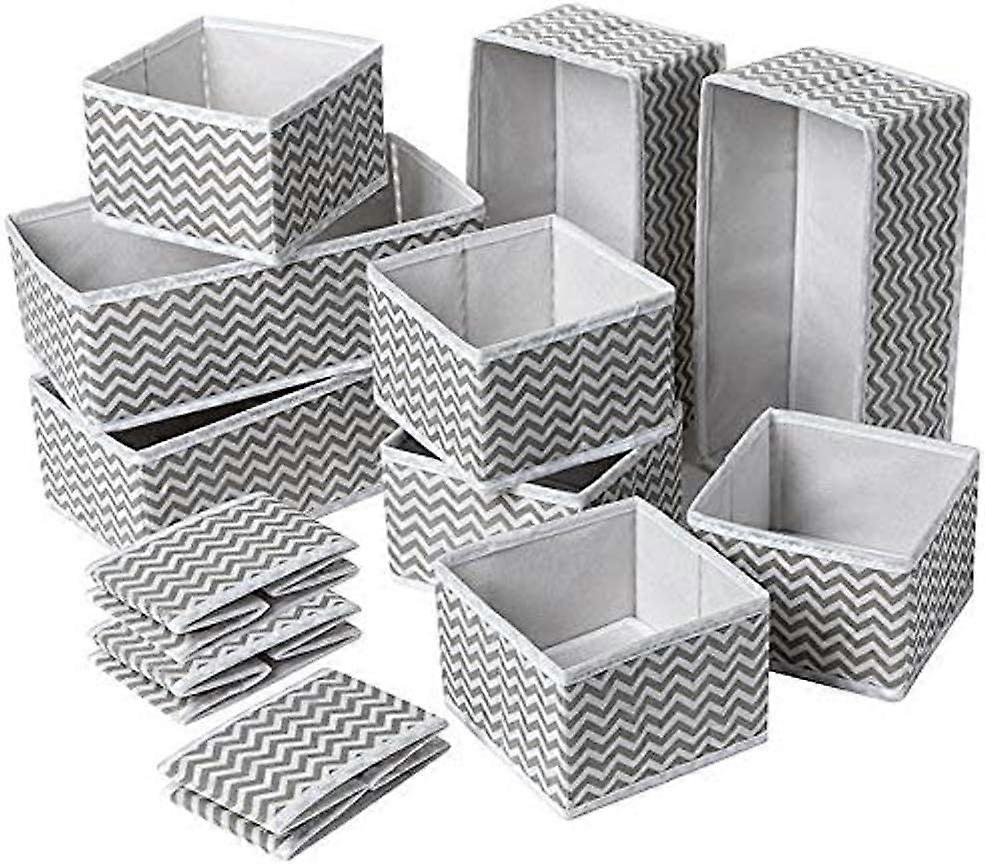 Pack of 12 Foldable Non-Woven Drawer Organizer for Underwear, Bras, Ties, Socks Space Saving Compartment Storage Box (12 Pieces, Gray)