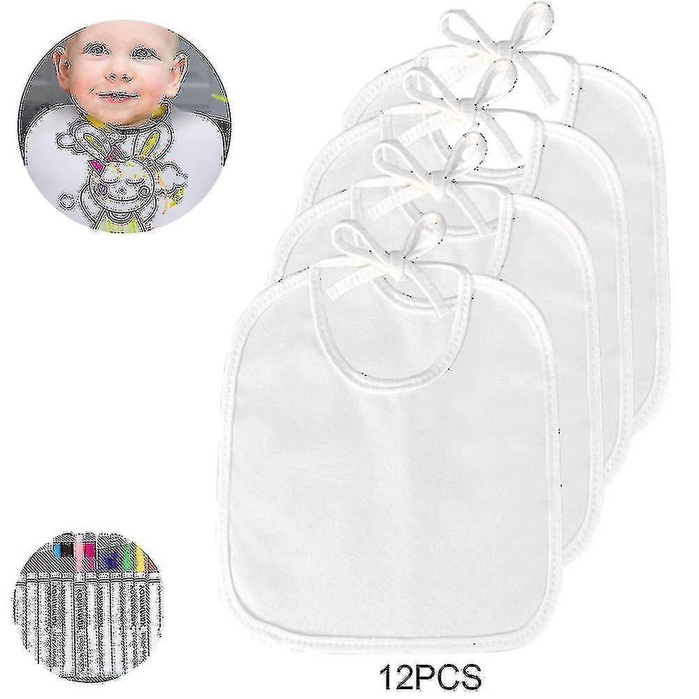 Pack Of 12 Painting Bibs, 22 * 28cm White Baby Triangular Cloth Neck