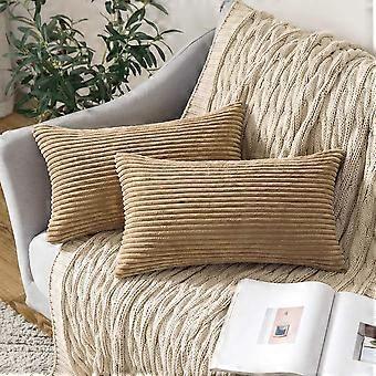 Pack of 2 Corduroy Pillow Covers 12 x 20 Inch Lumbar Throw Pillow Covers Khaki Pillowcases for Sofa Bedroom Couch
