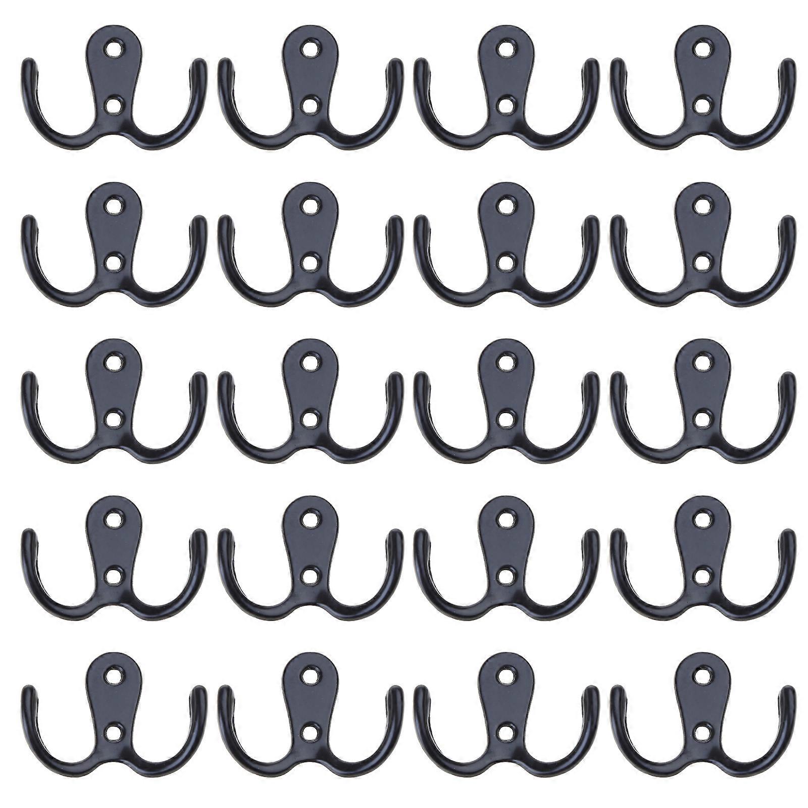 Pack of 20 Zinc Alloy Hook Stylish Clothes Hooks for Wardrobe Convenient Hanger Hooks Retro Coat Hooks for Fitting Rooms Black