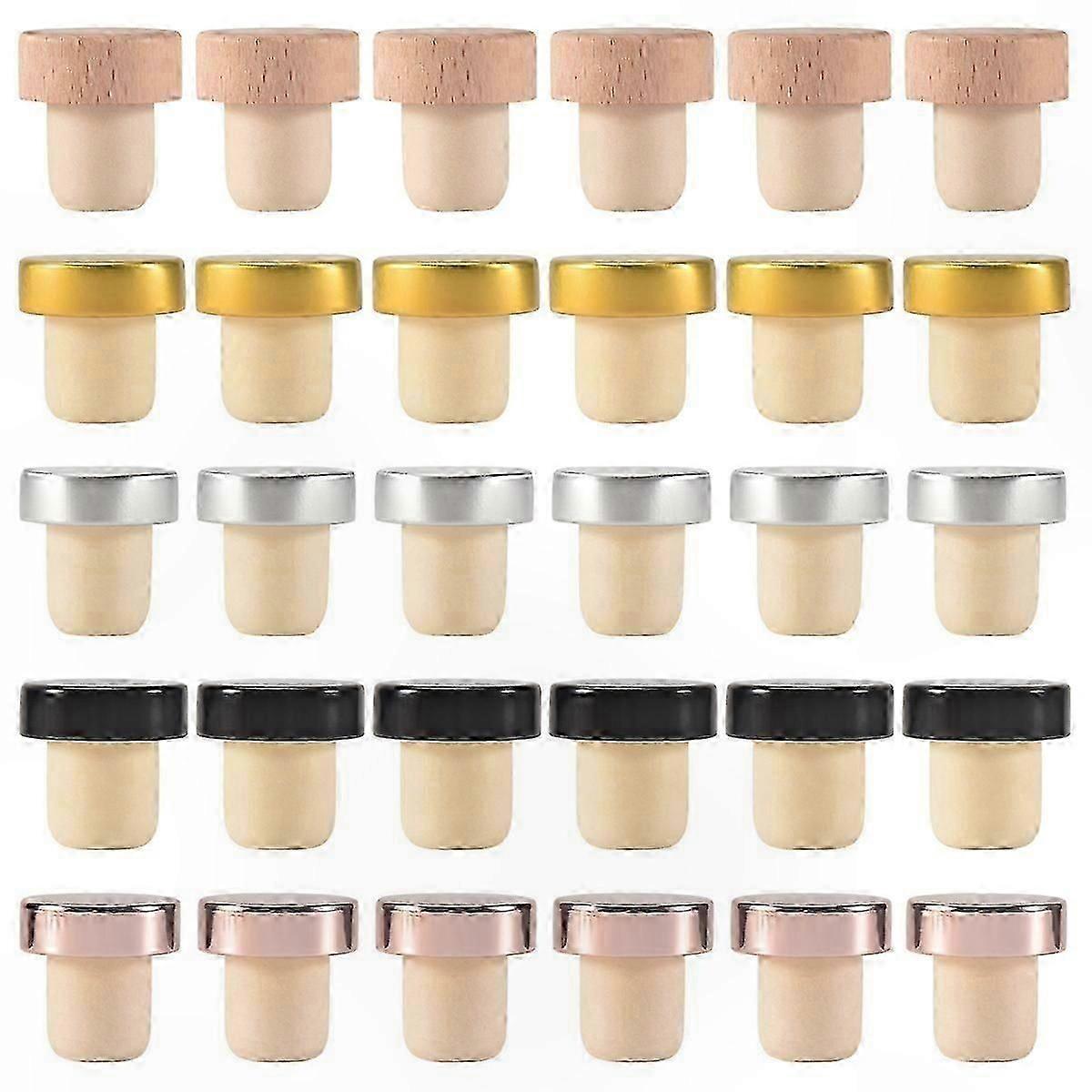MATERIAL: Wine cork is made of high-quality material. APPLICATION: The T-shaped wine cork stopper is used for sealed storage of wine bottles, beer bottles, glass bottles, wish bottles, paint bottles, art crafts, and more. TIPS: Reusable and safe for direct contact with food and beverages. Color: Wood color, gold, silver, rose gold, black Material: Cork + Plastic Size: 2 x 3 cm Package Contents: 30 x Soft Corks (6 for each color) Note: Only the items listed above are included. Light shooting and different displays may cause slight color variations between the image and the actual item. Measurement may vary by +/- 1-3 cm.