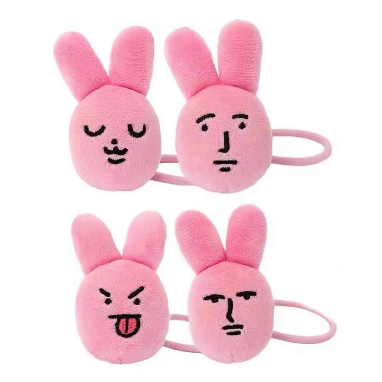 Pack Of 4 Pink Rabbits Plush Hair Ties Hair Decoration Hairpieces Soft Comfortable Elastic Bands for Girls and Women