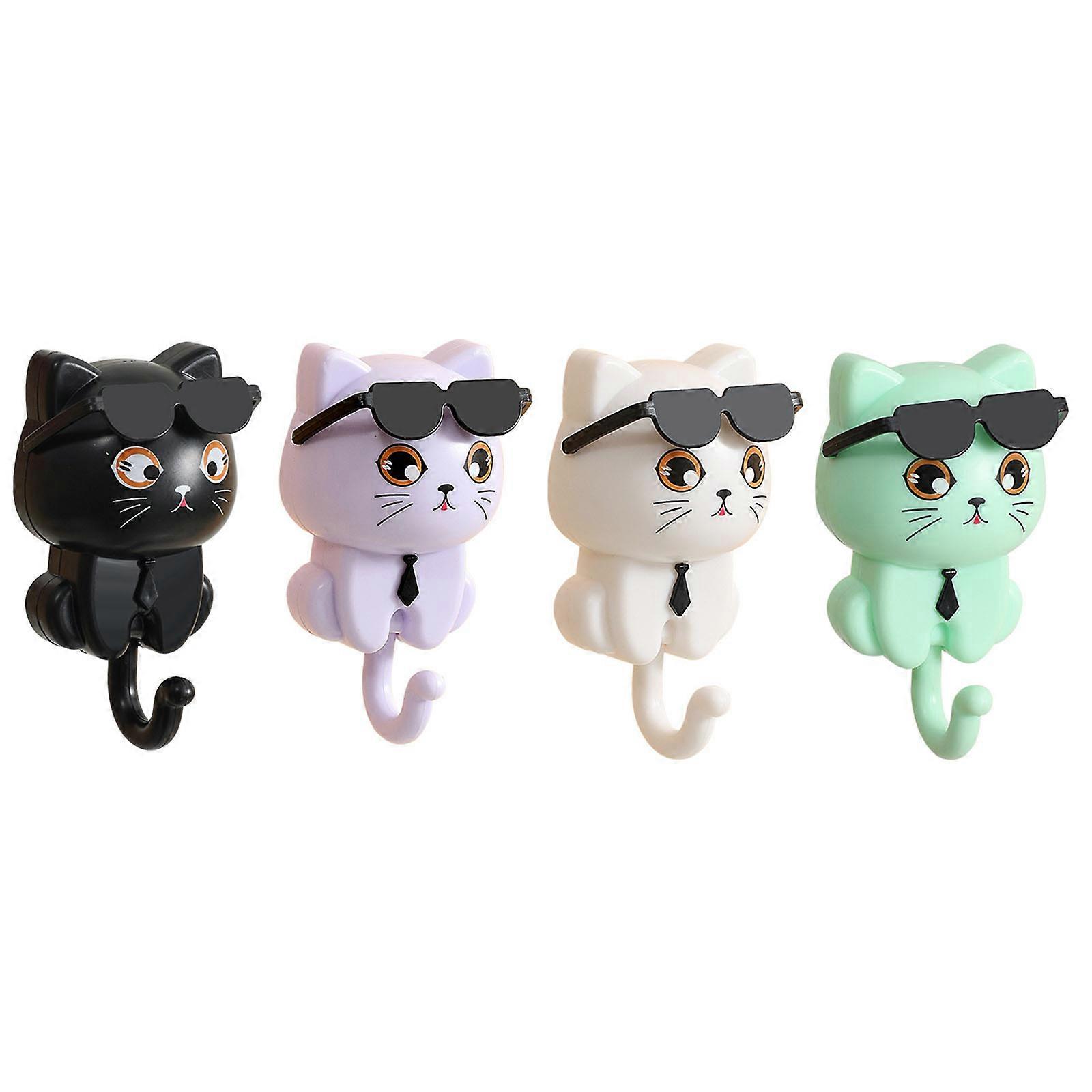 Product Features 1.Fun and Adorable: Cartoon Sunglasses Cat Key Holder boasts unique design that automatically lifts up the sunglasses when you suspend your keys. Add a playful touch to your decor while keeping your keys organized and easy to find. 2.Add Flair: Our Cat Key Holder is must-have home decor good. It easily adds a fun quirky touch to your interiors while keeping your keys organized. Perfect for installation in bedrooms, bathrooms, entrances, and more! 3.Long-term Use: Crafted from superbb quality material, cat key holder has notable strength and hold heavy keys. It's waterproof and fixed securely, guaranteeing long-lasting performances and reliability. 4.Handy to Install: Effortlessly install our Cat Key Holder without any hardware or drilling. Simply peel off the se-lf-adhesive backing and attach it to any smooth surfaces for a simple, no-hole installation. 5.Multiple Functions: Keep keys, bags, hats, jackets neatly arranged with this multi-purpose use cat key holder, ensuring everything is easily accessible and in 1 place. Product Specification Weight: 140g Product size: 8.5x4.5x3cm Package size: 22x10x5cm Material: plastic Color: green, white, purple, black Style Single Hook StyleCartoon Packing List 4x cartoon gravity hooks