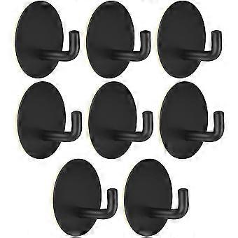 Pack Of 8 Hooks, Self-adhesive, Stainless Steel Towel Hooks, Wall Hooks, Black, Ideal For Bathroom, Toilet, Kitchen, Office, Without Drilling