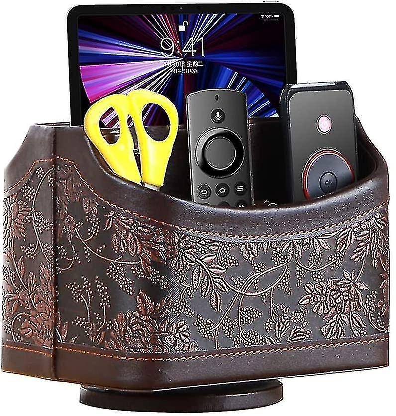 Antique Leather Remote Control Holder, 360 Degree Spinning Desk Tv Remote Caddy/box