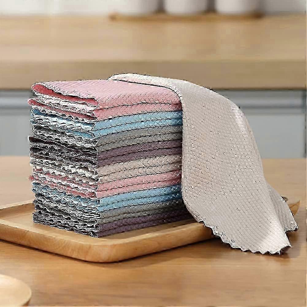 Microfiber Cleaning Cloths 10 Fish Scale Cleaning Cloths 25x25cm, Eco-friendly Reusable Towel For Ki