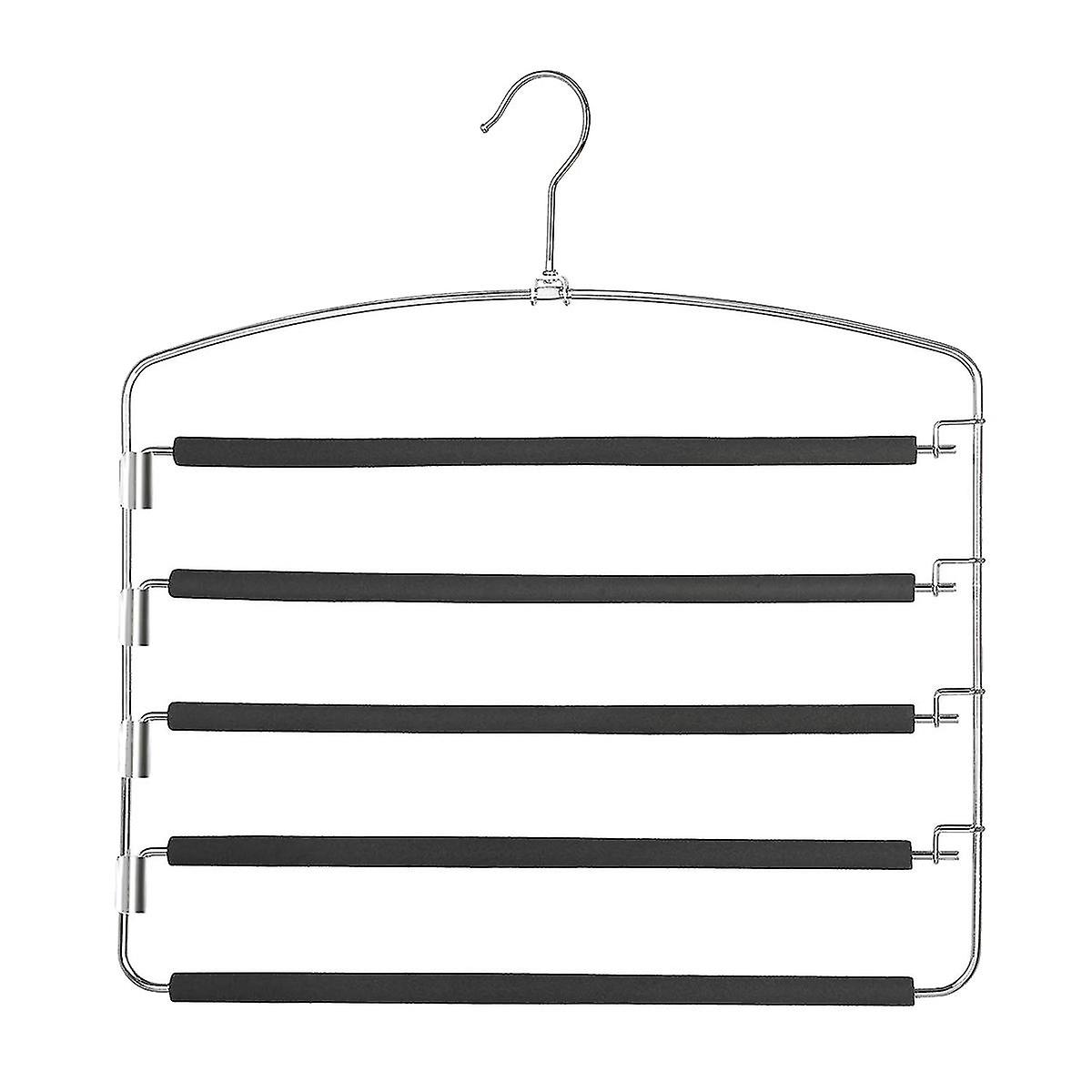 Space Saver--Each hanger crafted from durable polished stainless steel,at least hold 5 pants(up to 40 lbs.), Save the space in your closet that offer you extra room to other things.Non-slip Design--High quality foam protect your pants and clothes from being scratched and crumpled, avoiding the clothes fall down from the hanger.Closet Organizer--It can help you organize the closet, keeping everything organized within reach and on display all at the same time, so you will have a neat closet and you can take the clothes you want easily.Swing Arm--Easily put on and take down clothes by the swing arm designCompatible for jeans, pants, trousers, scarf, ties, towel, sweatpants, slacks etc.size:36*36cmMaterial:Metal + foamcolour:Silver + blackPackage Contents:1 * HangerOnly the above package content, other products are not included.Note: Light and different displays may cause the color of the item in the picture a little different from the real thing. The measurement allowed error is +/- 1-3cm.