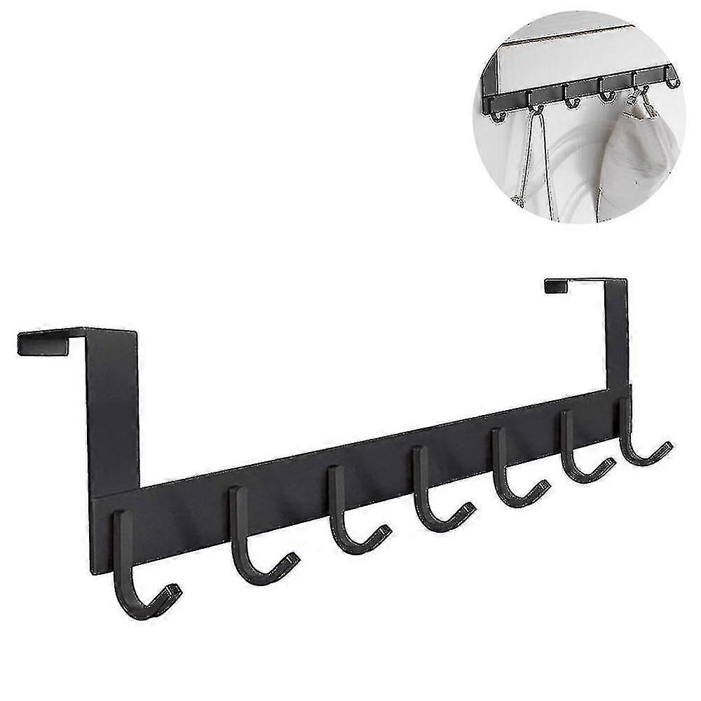 Over The Door Hook Hanger, Punch Free Coat Hooks, 7 Hooks, Aluminum Black