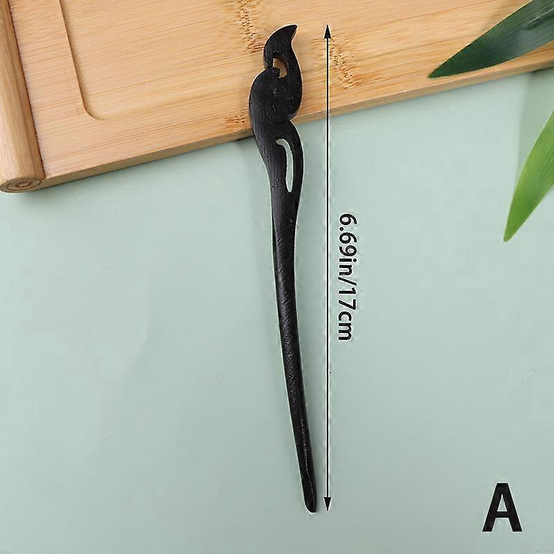 Traditional Wooden Black Hair Sticks Chinese Style Hairpins Carved Wood Hair Fork Vintage Chop Stick Headwear For Women Jewelry