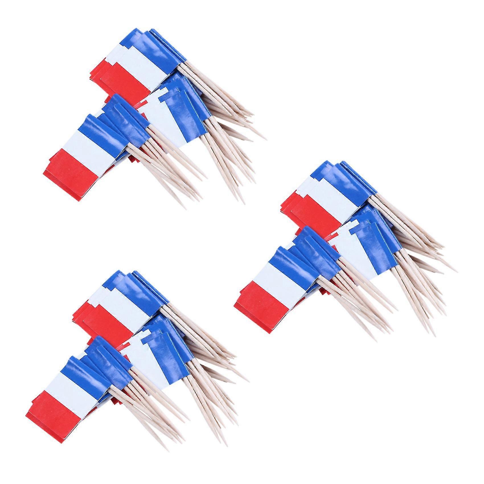 Lot Of 150 Pcs Mini Wooden Toothpick With Flag For Decor Of Party Fruit Pastry - France (blue, Whit