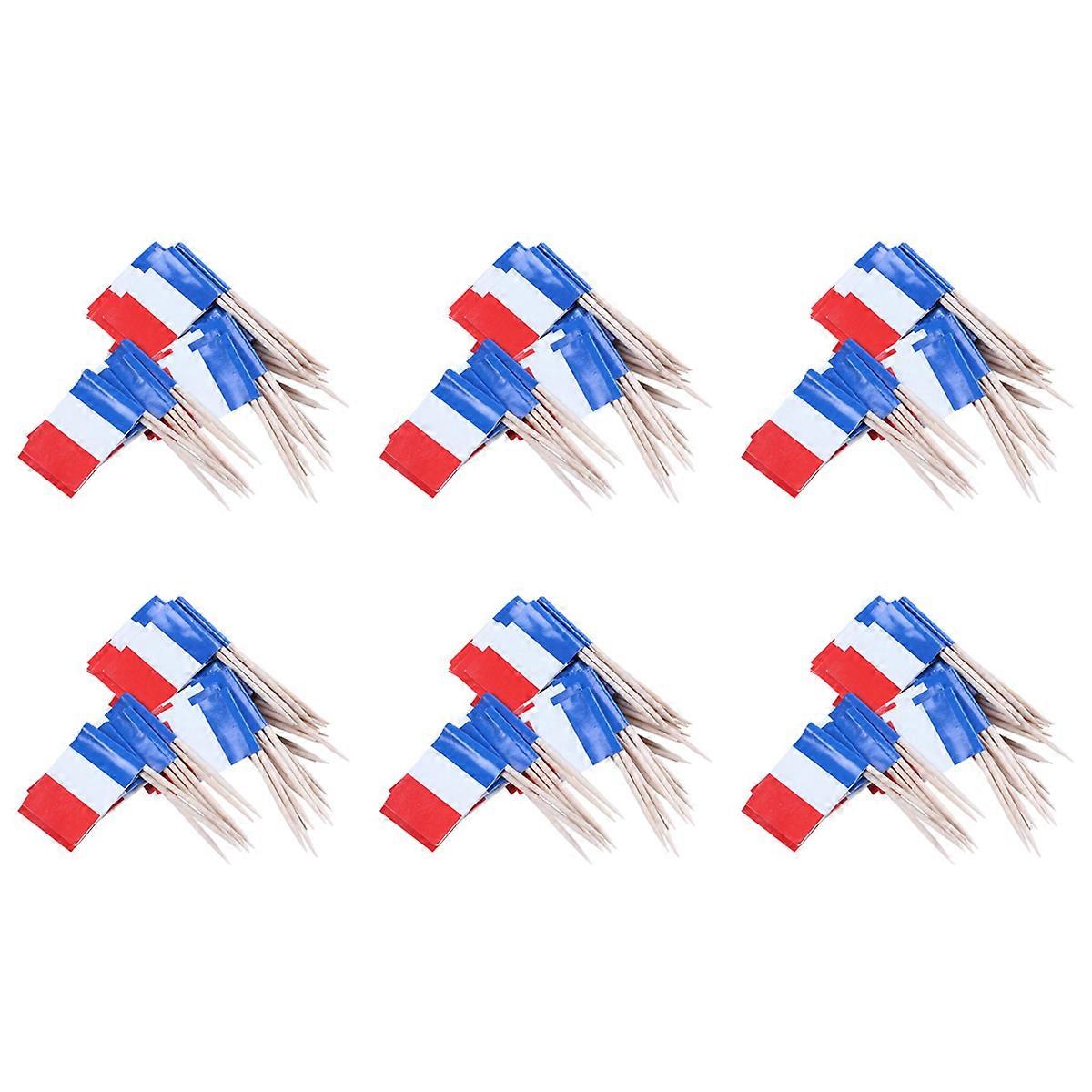Lot of 300 Pcs Mini Wooden Toothpick with Flag for Decor of Party Fruit Pastry - France (Blue, White