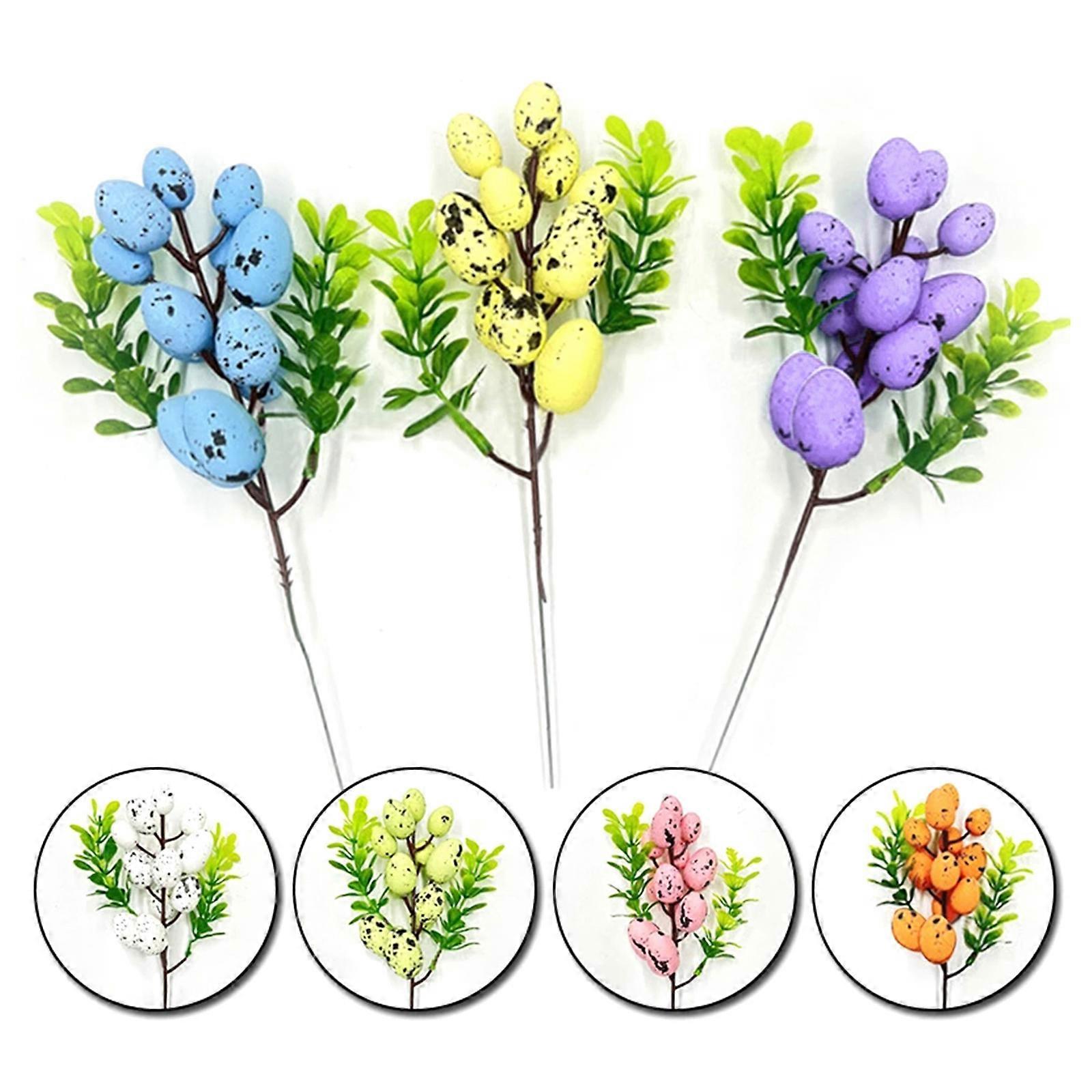 Easter Egg Cuttings Artificial Flowers Branch Colorful Painting Foam Bird Eggs Decoration DIY Craft Home Spring Yellow