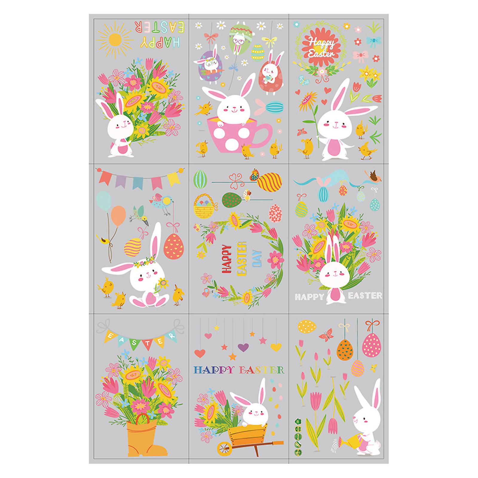 Easter Sticker Sheets Set of 9 Bunny Carrot Egg PVC Static Electricity Decal for Home Festival Window Wall Door Decor