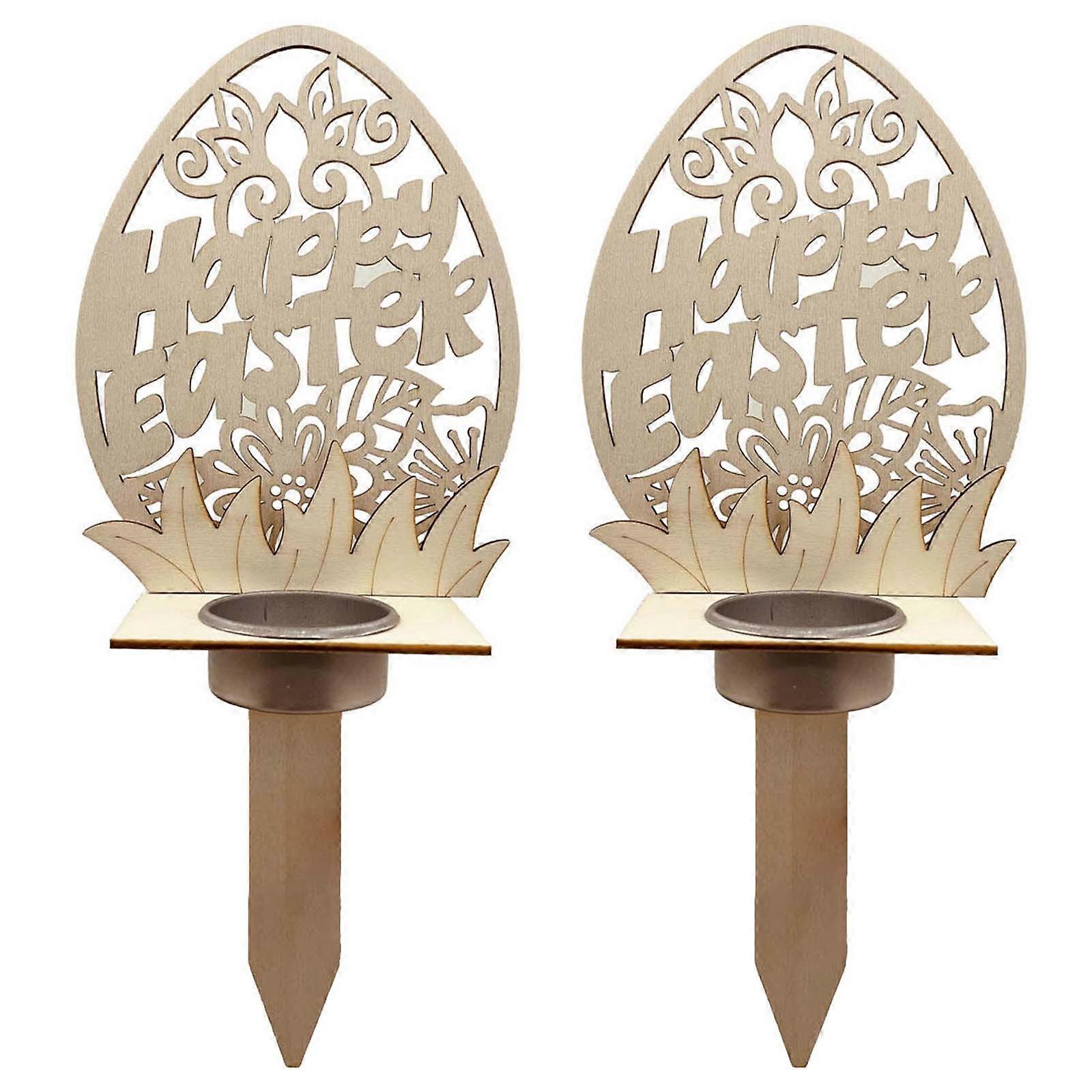 Easter Wooden Stake Feeder Hollow Egg Bunny Flower Pattern Woood Crafts for Home Outdoor Garden Lawn Yard Decoration