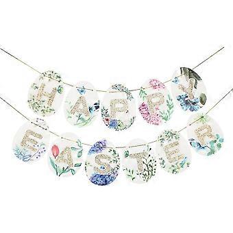 Easter Egg Banner Garland Decorations, Home Happy Easter Day Eggs Hanging Party Festival Spring Seasonal Family Decor