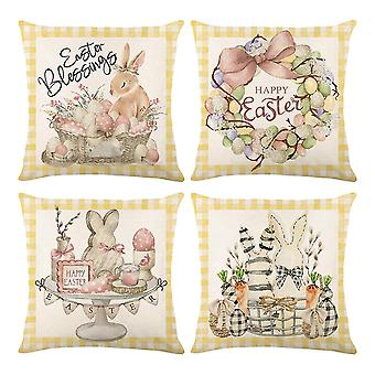 Easter Flower Rabbit Cushion Cover Square Pillow Cover 45 X 45cm Rabbit Pattern Throw Pillow Cover 4